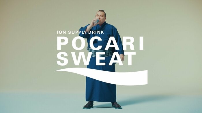 安青錦関は撮影中も、たくさん汗をかいていました。英語の「スエット」は「汗」を意味します。「汗をかく人には、ポカリスエットがいい」というシンプルなメッセージを真っ直ぐに伝えるCMとなっています。