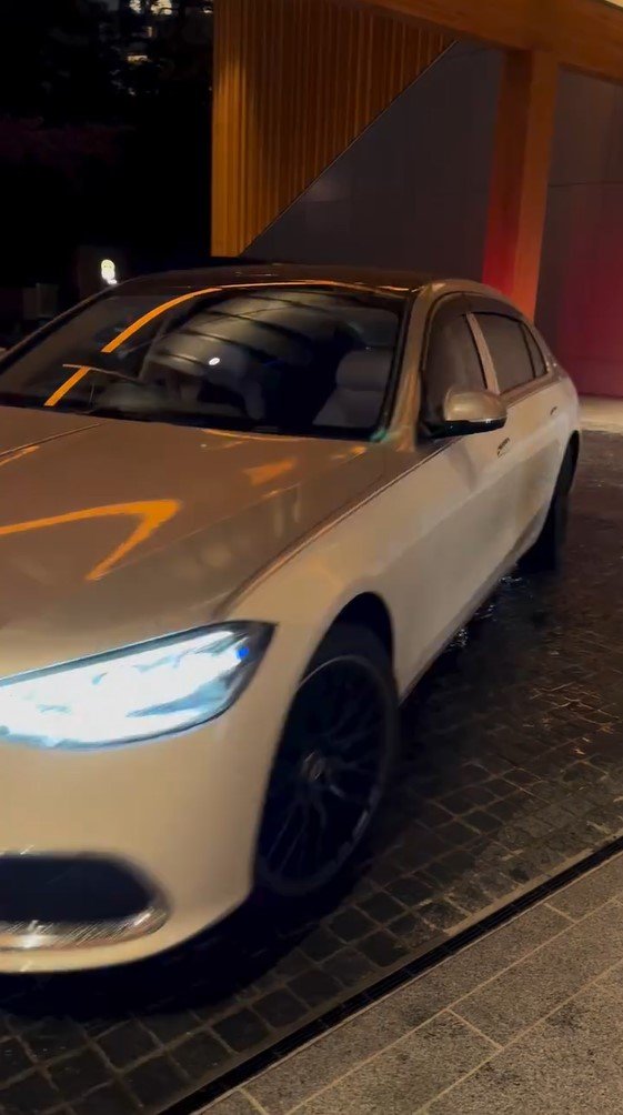 会場の前に到着した1台の白いリムジン。