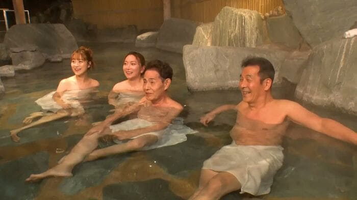 続いて向かうのは、上皇ご夫妻が泊まられた一流温泉。ザ・ドリフターズの名曲「いい湯だな」を大熱唱し、その後は幼なじみと再会。