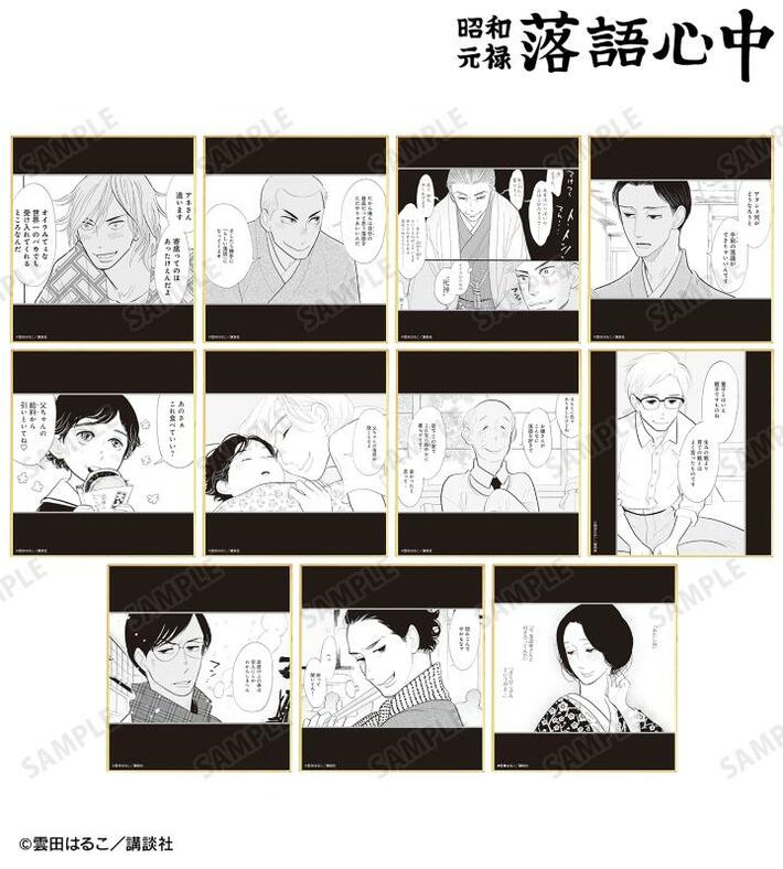 与太郎、八雲、菊比古、信之助、小夏、松田さん、樋口、萬月、助六、みよ吉の原作コマイラストをミニ色紙に仕上げました。