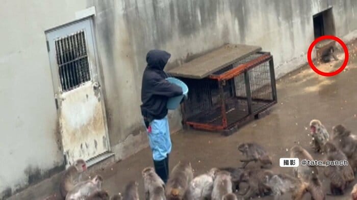しかし、3月3日。飼育員のお兄さんがエサやりを始めても、しがみつくことなく、隅の方でエサを食べていたのです。
