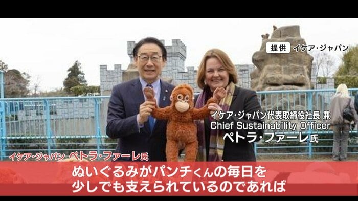 販売元であるイケア・ジャパンのペトラ・ファーレ氏は、“オランママ”がパンチくんの母親代わりを務めていることに対して、「ぬいぐるみがパンチくんの毎日を少しでも支えられているのであれば、これほどうれしいことはありません。いずれ仲間のサルたちとの生活になじみ、必要としなくなる日が来ることを願っています」とコメントしています。