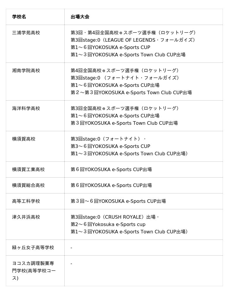 - 第1回YOKOSUKA e-Sports Town Club CUP(学校対抗)