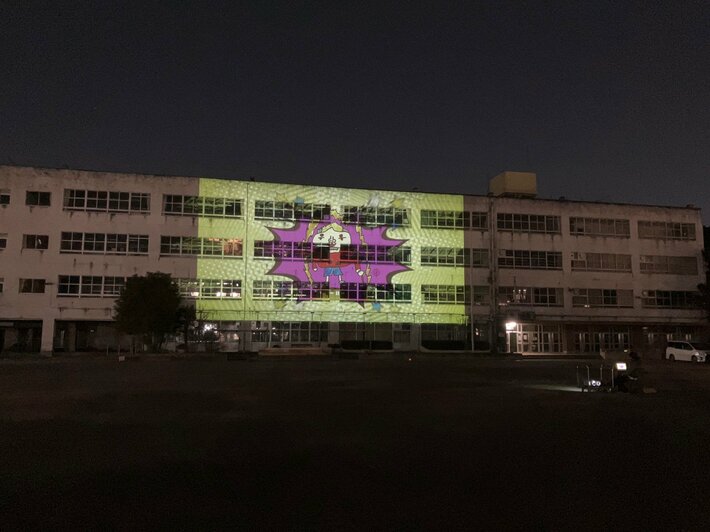 この度のグランドフィナーレでは、高七小へのお別れの式典と併せて、これからの高島平のまちの風景を創っていく、地域で活躍する方々や卒業生、子どもたちの「得意の持ち寄り」による「フィナーレ文化祭」が、高島平の新たな門出を創りあげます。トリを飾るのは、高七小卒業生のクリエイター「キノコ」さんによるプロジェクションマッピング。都立高島高校軽音楽部の演奏の後に、地元小学校の児童たちが描いた様々な「未来の高島平にやってきた仲間たち」の絵を校舎に大きく投影します。