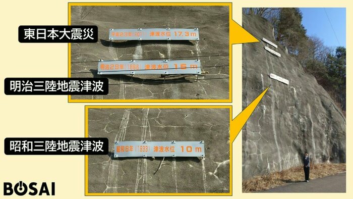 と、3回の巨大津波の痕跡が記されていました。