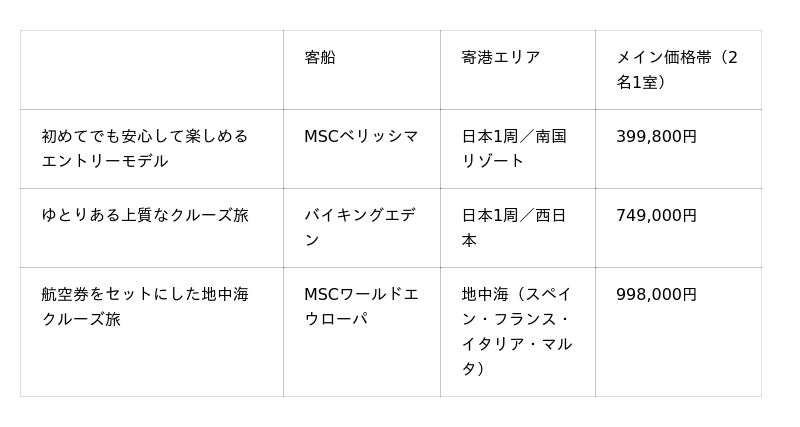 ■ジャパネットクルーズの商品ラインナップ