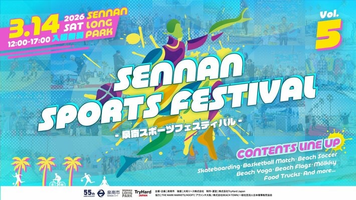 株式会社TryHard Japan(NASDAQ: THH 上場 TryHard Holdings Limited の子会社)は、泉南市と2026年3月14日(土)SENNAN LONG PARK(大阪府泉南市)にて、開催予定の「泉南スポーツフェスティバル vol.5」について、先日発表した開催情報に加え、新たな追加コンテンツが決定しましたので、お知らせいたします。
