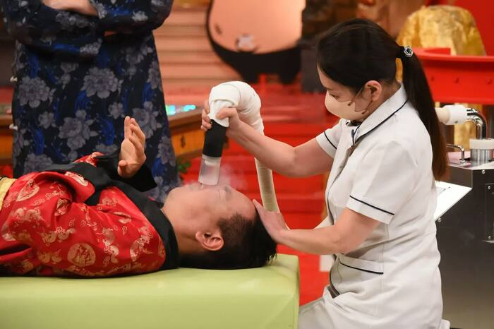 山内さんの「おまえらもやってみろ!」というキレ気味の訴えに、仕方なく濱家さんと渋谷さんも施術を受けることに…。