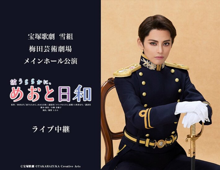 宝塚歌劇団 雪組が2026年4月26日(日)に梅田芸術劇場メインホール(大阪府)にて上演する、『波うららかに、めおと日和』の模様を、全国各地の映画館にてライブ・ビューイングいたします。
