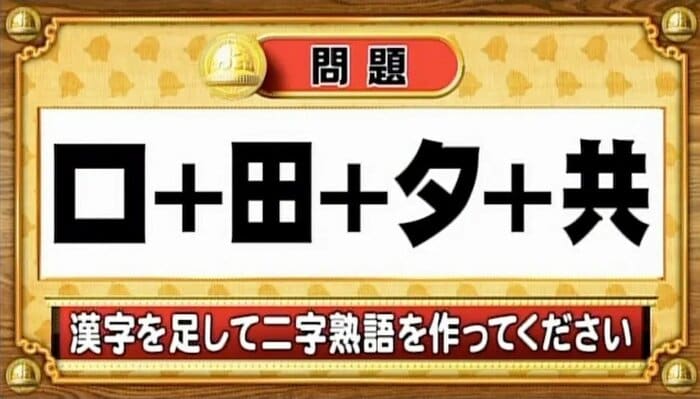 「口+田+夕+共」。漢字を計算して二字熟語を作成してください。