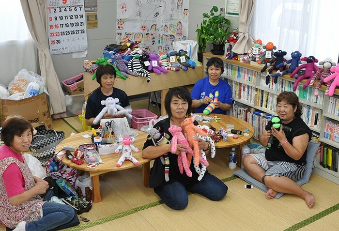 埼玉県にある釣り具屋さんの専務さんが、趣味で“ソックモンキー”を作ってたのよ。それが一緒に仮設に住んでいた子どもさんたちに送られてきたの。