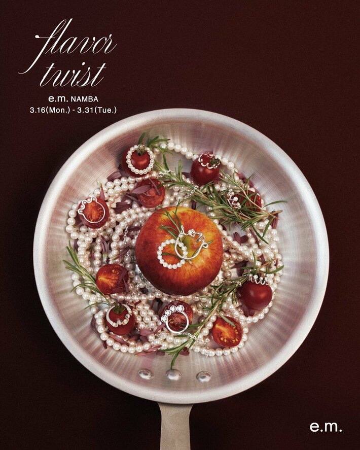 ジュエリーブランド『e.m.』を運営するイー・エム・デザイン株式会社は、2026年3月16日(月)~3月31日(火)の期間限定で、e.m.なんば店にて「flavor twist」と題したイベントを開催。日々のコーディネートにもひねりを効かせて、自分らしさをより魅力的に引き出すリングを多数ご用意します。
