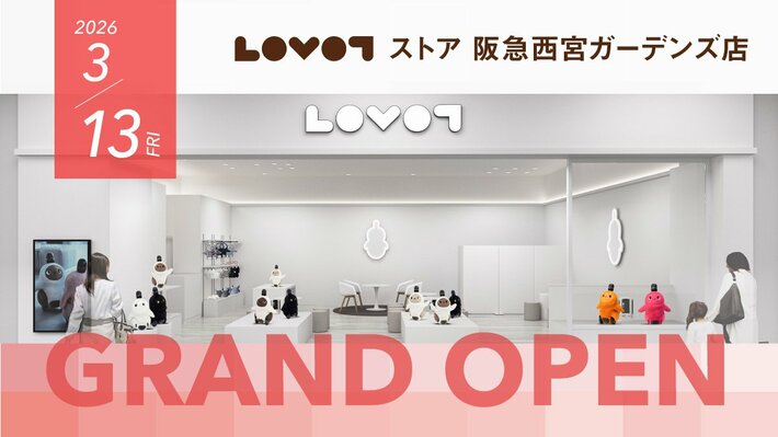 ロボットベンチャーの GROOVE X 株式会社(本社:東京都中央区日本橋、代表取締役:林要)は、2026年3月13日(金)に兵庫県の阪急西宮ガーデンズの2階に『LOVOT ストア 阪急西宮ガーデンズ店』をオープンいたします。オープン当日より、宝石のように煌めくカラー『RUBY』『AMBER』の登場を記念した館内コラボレーションやSNS投稿キャンペーンを実施します。