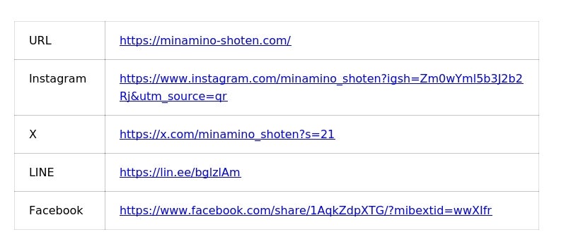 メール:info@minamino-shoten.com