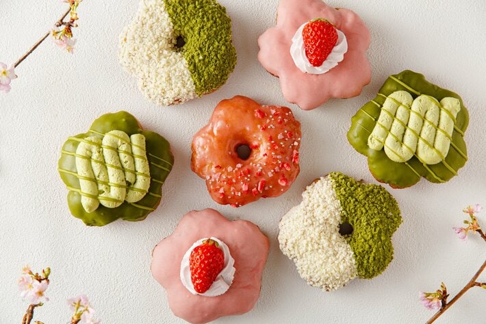 丸ごと苺ブロッサム、抹茶ティラミスブロッサムなど全4種。春の訪れを感じる桜型ドーナツを3月16日(月)~4月12日(日)期間限定で販売!
