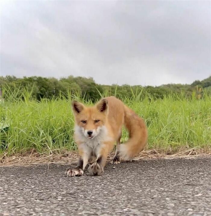 まるで犬みたい!サービス精神旺盛のキタキツネ