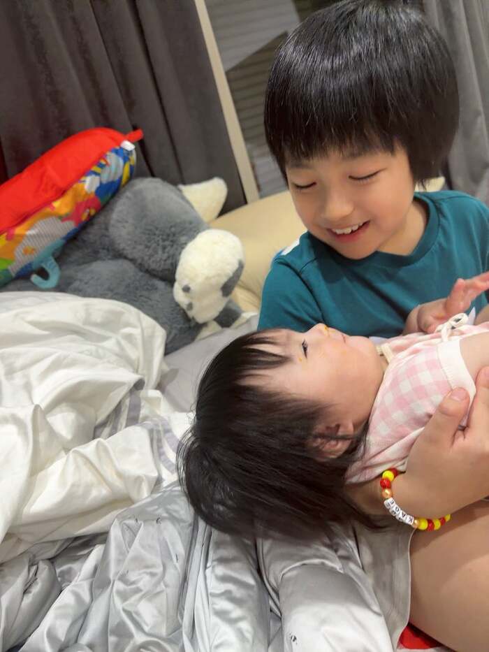 川崎希 生後8ヵ月次女をなでなでする愛らしい兄妹ショット披露