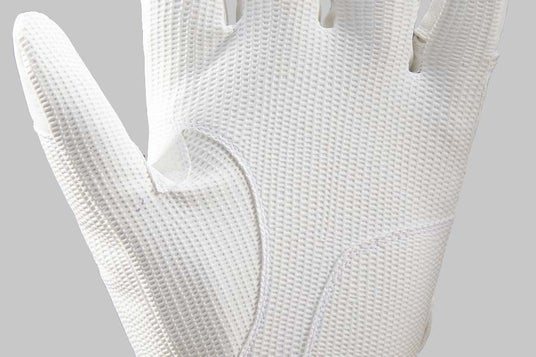 1:少ない力でバットを握り込める!中指~小指を3Dパターンにより立体縫製することで自然なバットグリップが可能。