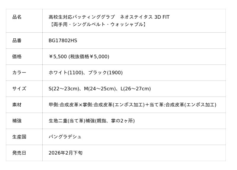 「ベースボールを科学する。」ゼット株式会社(本社/大阪市天王寺区、代表取締役社長/渡辺裕之)は、高校硬式野球に挑戦するプレーヤーに向けて装着しやすく、しっかりと握り込める高校生対応バッティンググラブ 【ネオステイタス 3D FIT】を発売しました。