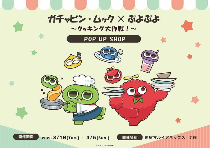 株式会社コンテンツシード(本社:東京都品川区,代表取締役:大塚 則和)は、2026年3月19日(木)よりガチャピン・ムック×ぷよぷよ POP UP SHOPを開催いたします。
