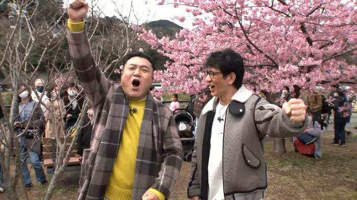 オープニングは、河津桜で有名な静岡県賀茂郡河津町で咲き乱れる桜をバックに、山崎さんと柴田さんのロケ映像からスタート。