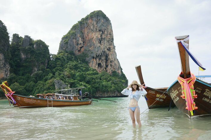 切り立つ岩壁や真っ青なプライベートビーチが広がるラグジュアリーホテル、秘境・ライレイビーチなどでロケを敢行。キュートな笑顔からグッと大人びた表情まで、多彩な魅力をたっぷり収録しています。