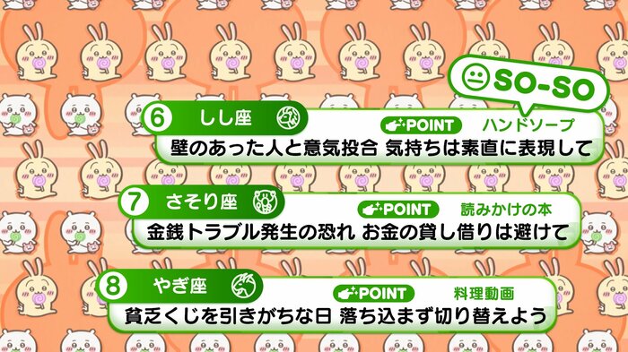 『めざましテレビ』で放送中の「ちいかわ占い」 テレビ放送がない日はお休みで、月~土:朝7時以降に更新予定です。