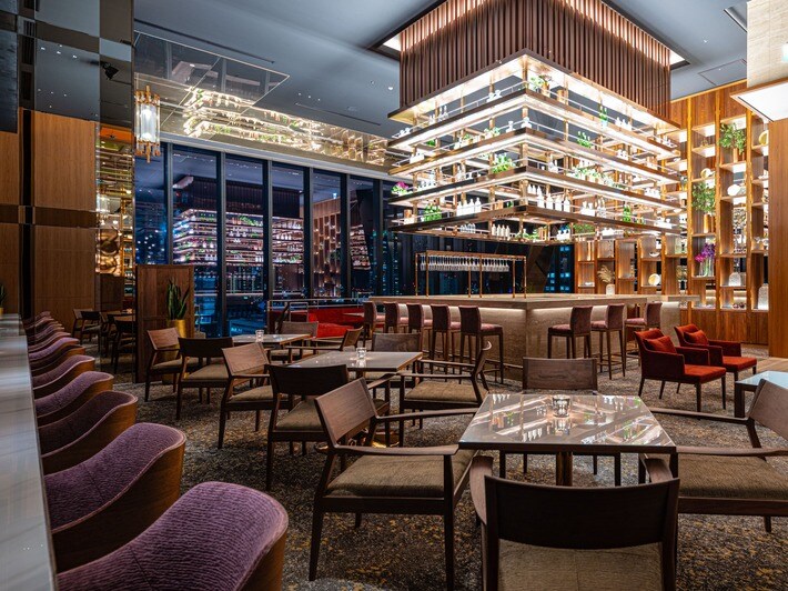 「THE C's SKY BAR」では、煌めく夜景を贅沢に独占し、こだわりのお酒と上質なおつまみを提供。ゆとりのある営業時間とともに、洗練された空間が大人の社交場としての品格を演出します。