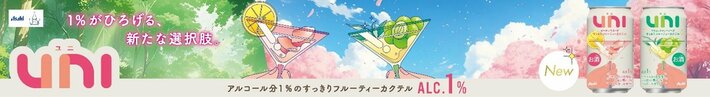イオンリカー株式会社(本社:千葉市美浜区、代表取締役社長:吉澤研二)は、アサヒビール株式会社と共同で、アルコール分1%の新しいチューハイ「UNI(ユニ)」を本州・四国のイオン・イオンスタイル・イオンリカー約350店舗※1において、3月17日(火)より数量限定※2で発売します。