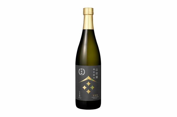 日常の食卓で映える、シンプルで洗練されたたたずまいを追求しました。重厚感のある、緑みを帯びた黒色のボトルに、金色のキャップおよびキャップシールを被せることでプレミアムな上質さを演出。ラベル中央には、山田錦を家紋風に図案化したモチーフを大きく配し、山の麓に広がる光り輝く田園の風景を象徴的に表現しています。また、右上に記した「山田錦」「特別純米」の文字で商品特徴をわかりやすく訴求、伝統的な風格の中に現代的なアクセントを融合させた、こだわりのデザインに仕上げています。