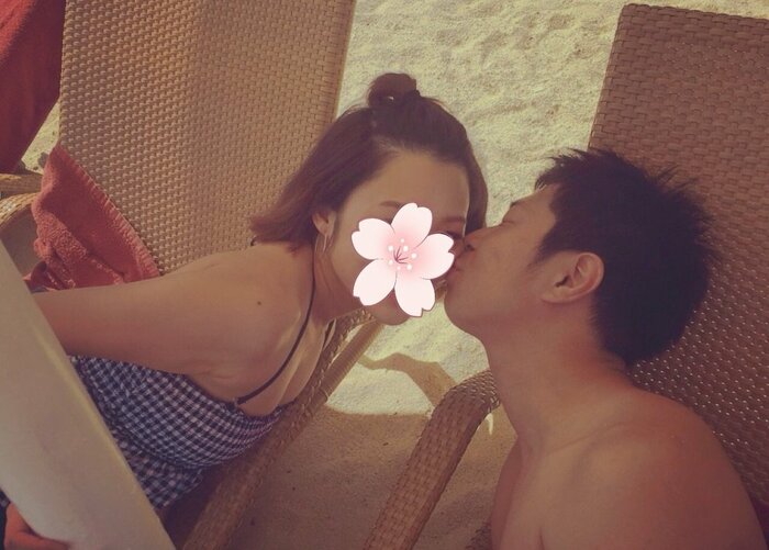 さらに、砂浜に置かれたビーチチェアでくつろぐ様子を収めたショットでは、あいさんは尾形さんが座る隣の椅子の方に身を乗り出していて、尾形さんはそんなあいさんの頬にチュッ!とキスしています。