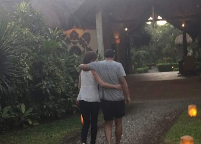 そして、南国風の建物に向かって歩く2人の後ろ姿ショットでは、尾形さんはあいさんの肩に手を回し、あいさんは尾形さんの腰をそっと持っています。2人はなにやら楽しげに会話をしているようで、遠目から見ても和気あいあいとした雰囲気が伝わってきますね。