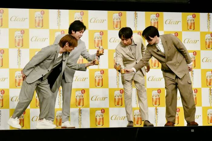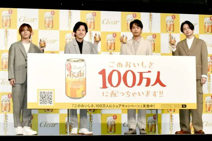 4月13日、「クリアアサヒ リニューアル新CM発表会」が行われ、二宮和也さん、中丸雄一さん(KAT-TUN)、山田涼介さん(Hey! Say! JUMP)、菊池風磨さん(Sexy Zone)が登場しました。