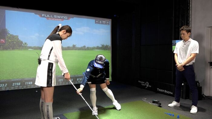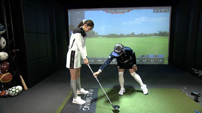 早速、ドライバーを持って、ゆうちゃみさんがスイングすると…有村プロと坂元アナが驚きの表情を見せます。“ゼロ”から教える覚悟で臨んだ有村プロも、ゆうちゃみさんのセンスに拍子抜け。