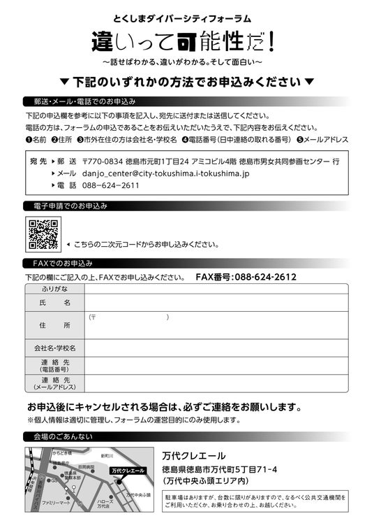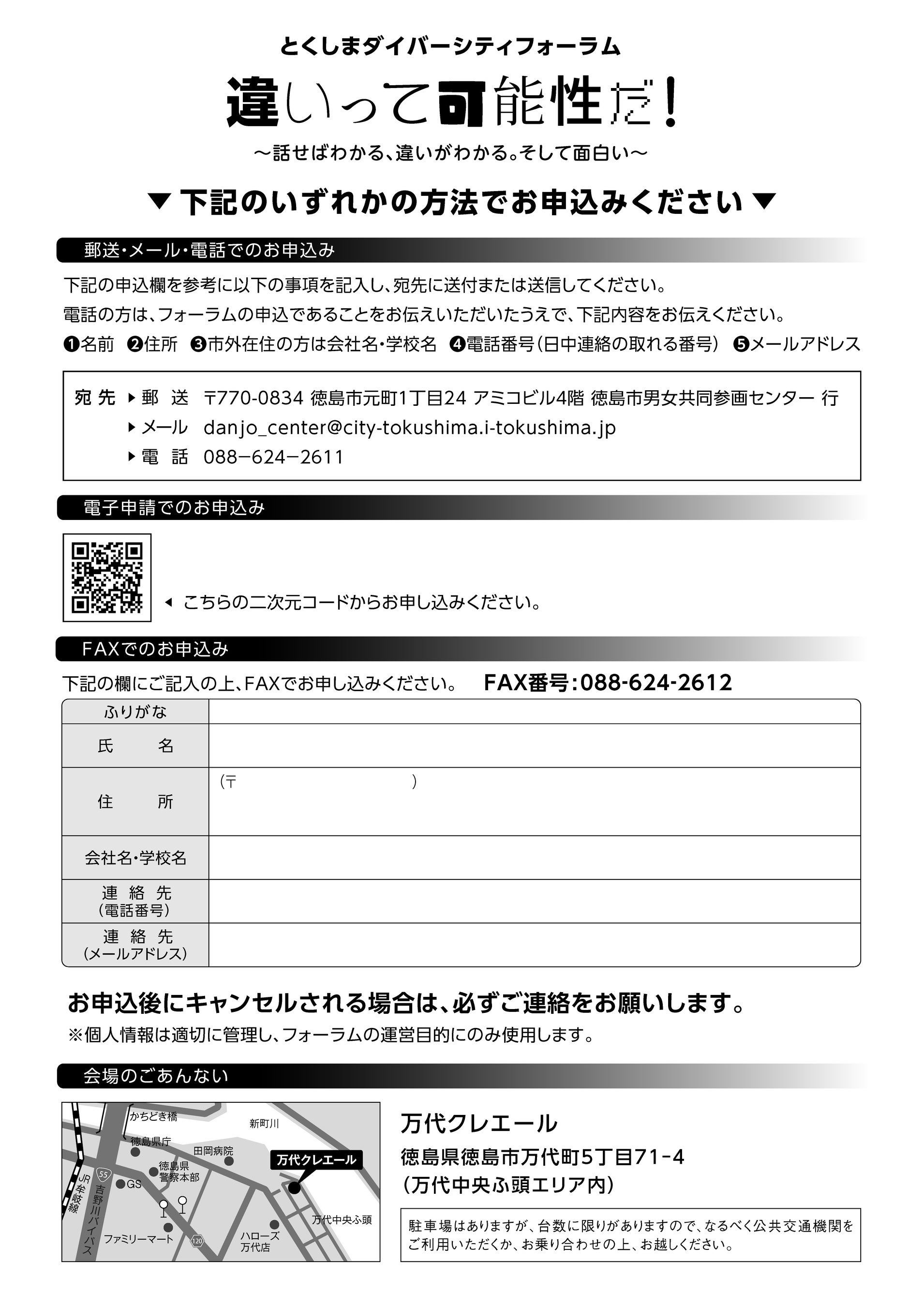 https://www.city.tokushima.tokushima.jp/shisei/machi_keikaku/genderequality/danjo/r8diversityforum.htmlお問い合わせ先
