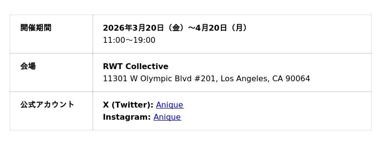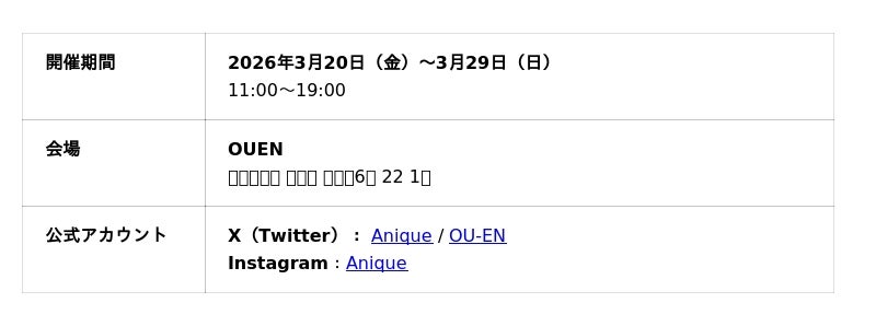 ECショップ「Anique Shop」: https://go.anique.jp/WG8cvcFUuk
