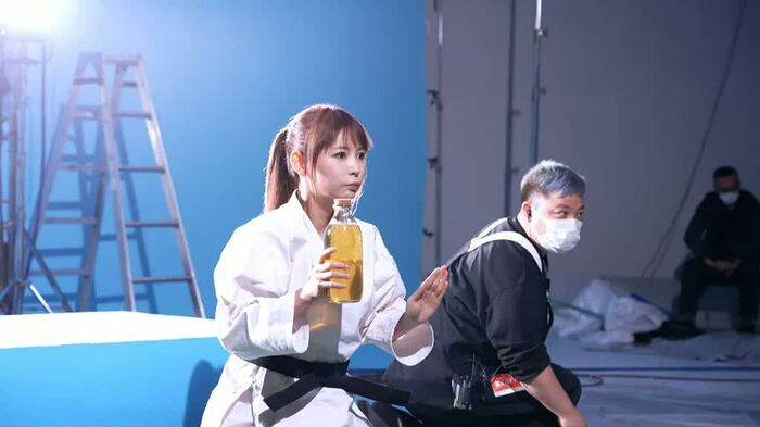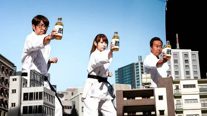 CMでは、空手着姿のさまぁ〜ずと中川さんが、街中の公園でホットドックを食べる女性に向けて「食後血糖値に!お酢!!」、仕事の休憩中の男性に向けて「内臓脂肪に!お酢!!」、日本の象徴である富士山の前で血圧を測る男性に向けて「高めの血圧に!お酢!!」と、街中の人々に「お酢のトリプルパワー」をアピール。