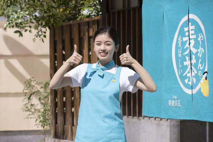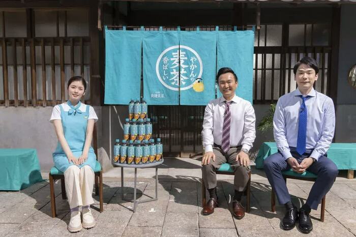 また、キンキンに冷えた麦茶を繰り返し飲むことが恒例化している「やかんの麦茶」のCM撮影現場ですが、小芝さん、濱家さんも慣れた様子で麦茶を勢いよく飲み、まさに店主と常連客のような息の合った様子を見せました。