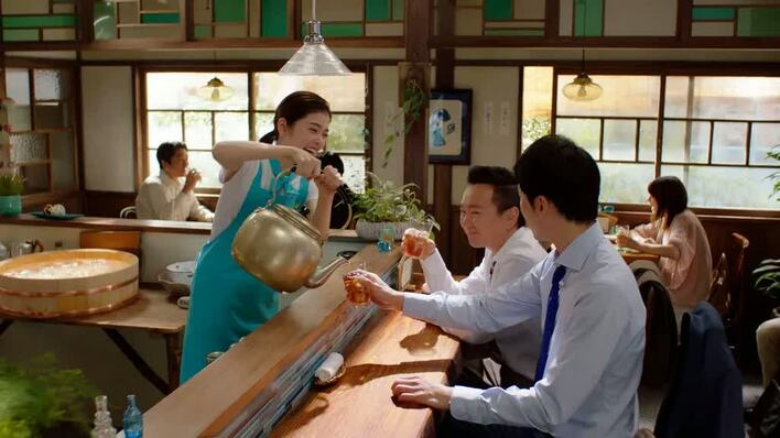 香ばしく後味すっきりで、会話を忘れてしまうくらいに“ ゴクゴク ”と夢中で飲んでしまうほどのおいし さを、店主役の小芝さんや濱家さんの豪快な飲みっぷりで描かれます。
