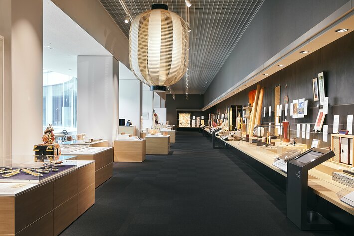 西陣織や京友禅などの染織品から京焼・清水焼、京漆器などの諸工芸品まで、バリエーション豊かな京都市の伝統産業74品目を一堂に展示。各品目の詳しい解説や制作工程の映像をはじめ、音・匂い・感触等を体験できるコーナーや道具・素材の展示を通して、完成品の鑑賞だけでなく、その背景やものづくりの過程や技術についても学び、楽しむことができます。また、AIが年齢や言語に合わせて解説する「ガイドアプリ」を通して、工芸の世界をより身近に、深く知ることもできます。