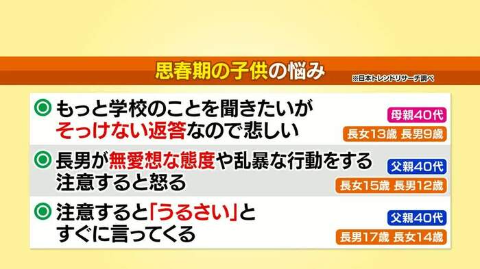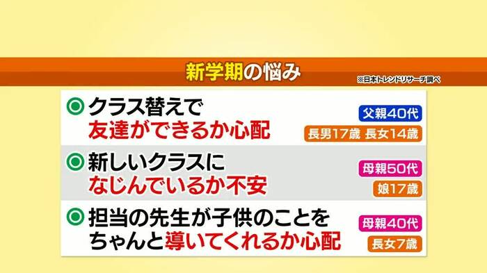 広末さんの高校時代の恩師でもある漆先生によると、春は特に進学やクラス替えなどで人間関係が変化するので、子供の悩みに注意が必要な季節。また、子供の変化に対応できずに悩む親も多いといいます。