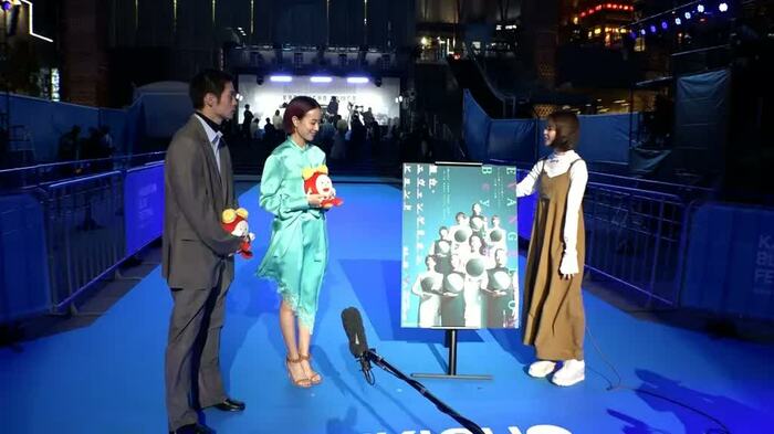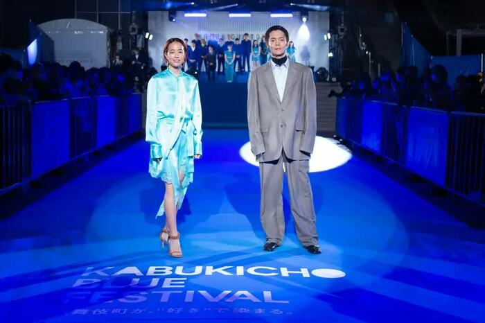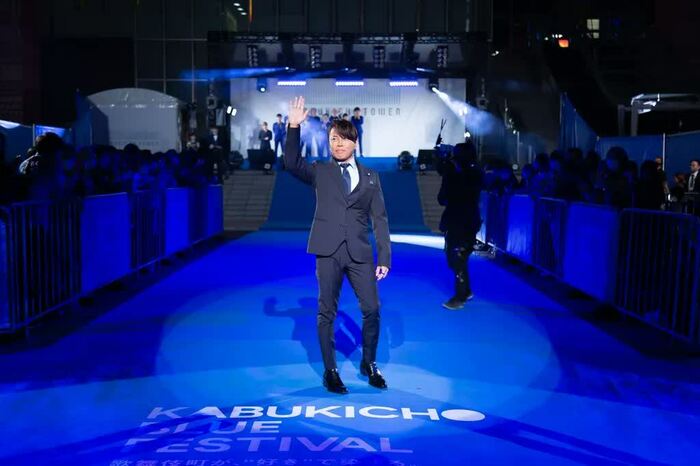 登壇者の皆さんは、本施設から隣接するシネシティ広場にかけて、歌舞伎町の文化に根ざす「水」をモチーフにしたブルーカーペットを歩き登場しました。