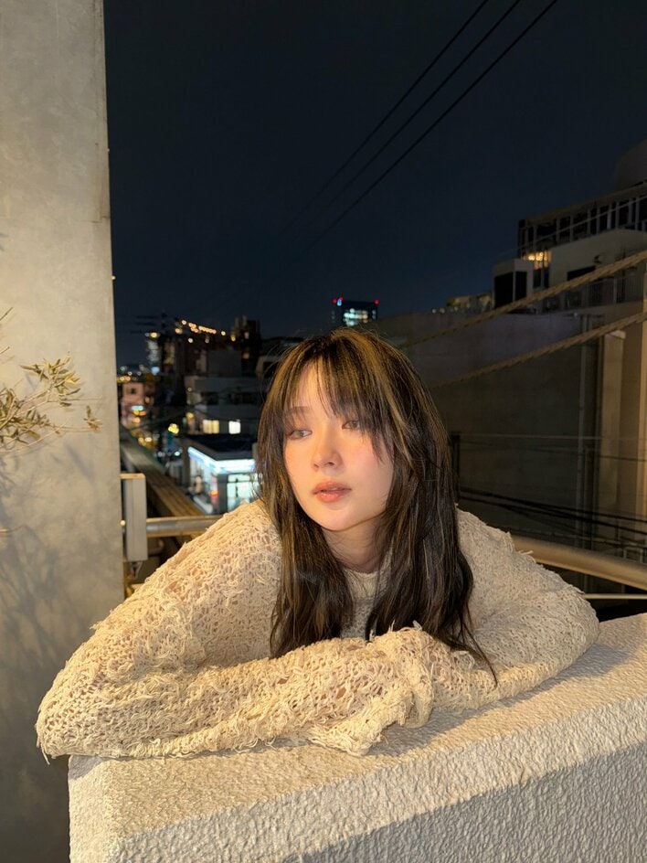 写真を見ると、暗めに染まったロングヘアに金色のメッシュを入れた姿で大人っぽい表情を浮かべています!無造作に髪がセットされているにも関わらず、魅力があふれ出ています。