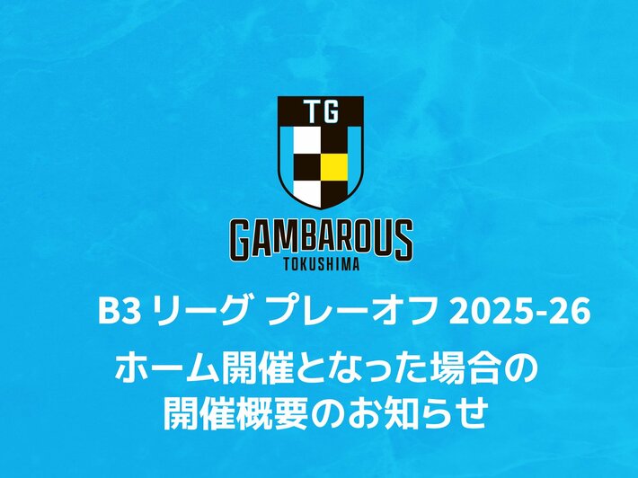 「B3リーグ プレーオフ 2025-26」がホーム開催となった場合の日程および会場について、下記の通りお知らせいたします。