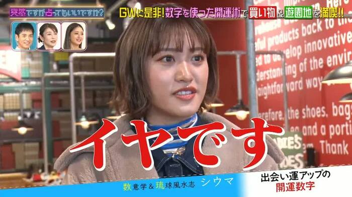 シウマさんいわく、「3」は行動力がない人や、勇気が出ない人におすすめだそうですが、王林さんは「それは大丈夫かも。行動力あるタイプだから」と断り、笑いを誘いました。
