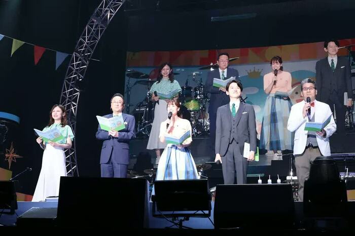 イベントの最後には、MC5人がステージに登場。「あの曲を聴かずに終われないですよね?最後ブチ上がって終わりたいですよね!」と三宅アナが叫び、本日登場した全アーティスト、ちいかわやロペたちも登場して、ゆずの「夏色」を全員で歌うことに。