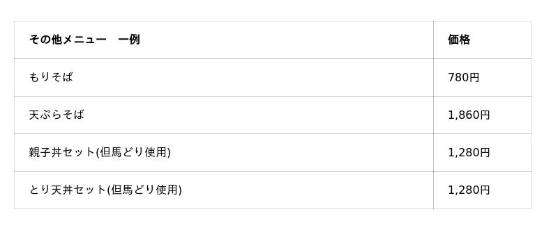 こだわりの”二八蕎麦”に加え、”但馬どり”を使った丼など多様なメニューをご用意しております。