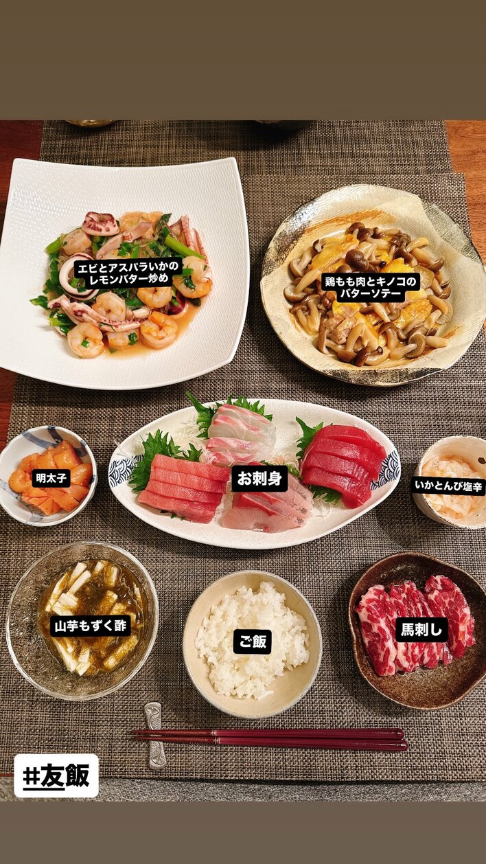 今回の投稿で板野さんは「今日の #友飯 食べたいのある?」とファンに向けて問いかけ、和洋さまざまな料理がずらりと並んだ食卓の写真を公開しました。