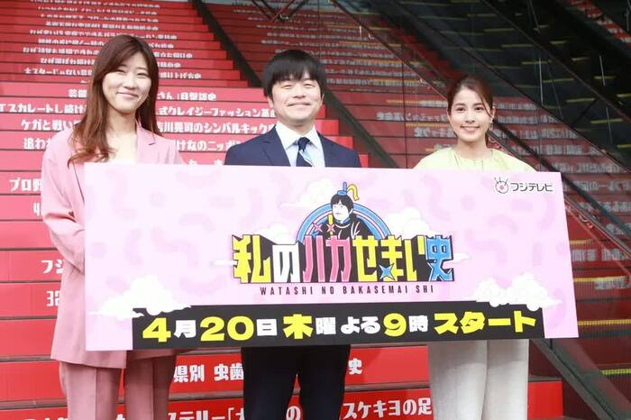 バカリズムさんがMCを務める、新番組『私のバカせまい史』(フジテレビ)の記者発表イベントが、4月18日に行われ、“研究長”ことバカリズムさん、“研究員”のヒコロヒーさん、進行を担当する永島優美フジテレビアナウンサーが出席しました。
