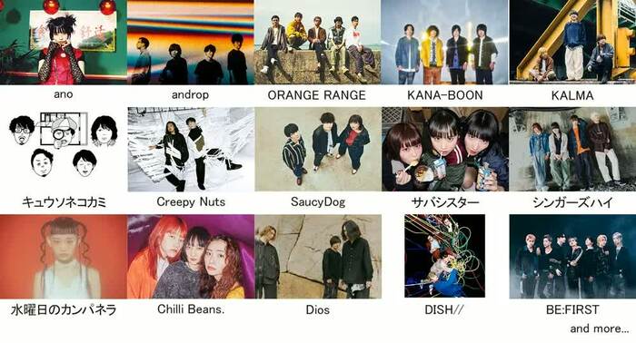 2日目は、若者から絶大な支持を集めるKANA-BOON、BE:FIRSTをはじめ、独特な世界観が人気のandrop、元ぼくのりりっくのぼうよみが結成したバンド・Diosなどが出演。